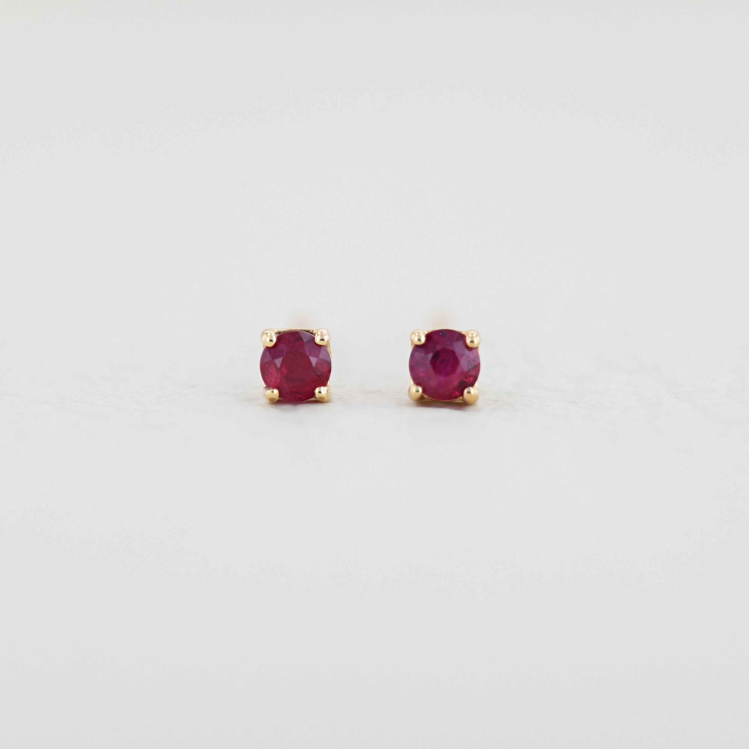 Cercei  1,46 grame aur galben 18k,, rubine ~ 0,19 ct.(2 bucati), taietura briliant, dimensiune ~ 0,26 x 0,26 cm.