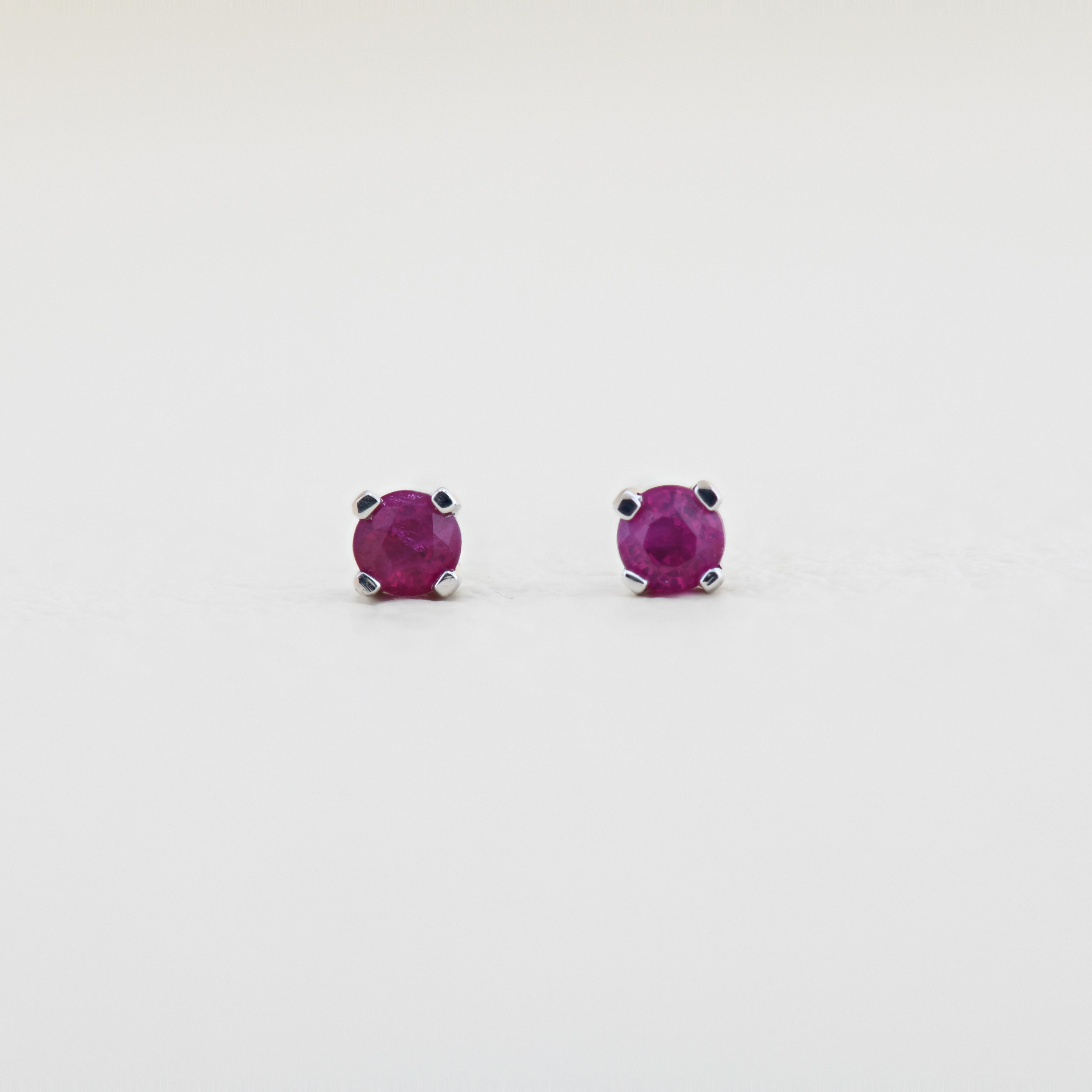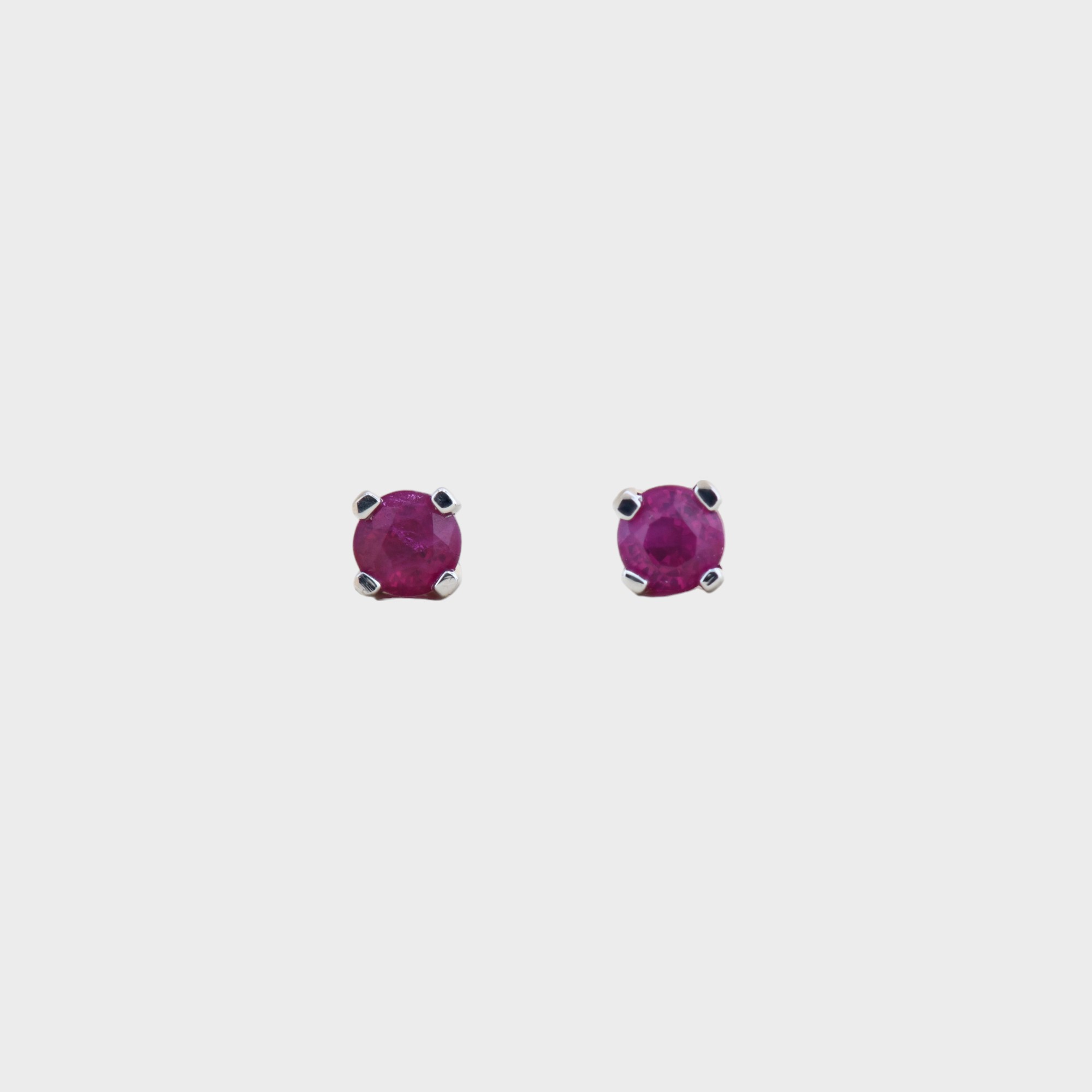 Cercei din aur alb 18k, 1,46 grame, rubine ~ 0,33 ct.(2 bucati), taietura briliant, dimensiune ~ 0,32 x 0,32 cm.