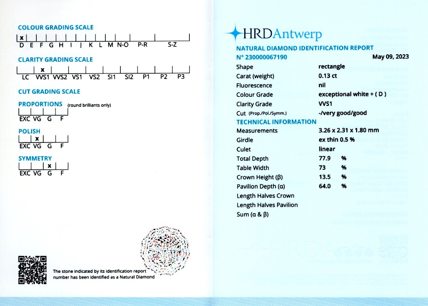 Diamantele sunt insotite de un certificat de expertiza care atesta caracteristicile pietrelor pretioase dupa caz: tip, carataj, culoare, claritate, taietura etc.