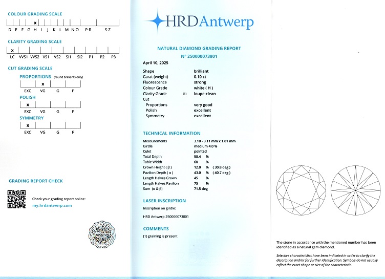 Diamantele / briliantele sunt insotite de un certificat de expertiza care atesta caracteristicile pietrelor pretioase dupa caz: tip, carataj, culoare, claritate, taietura etc.