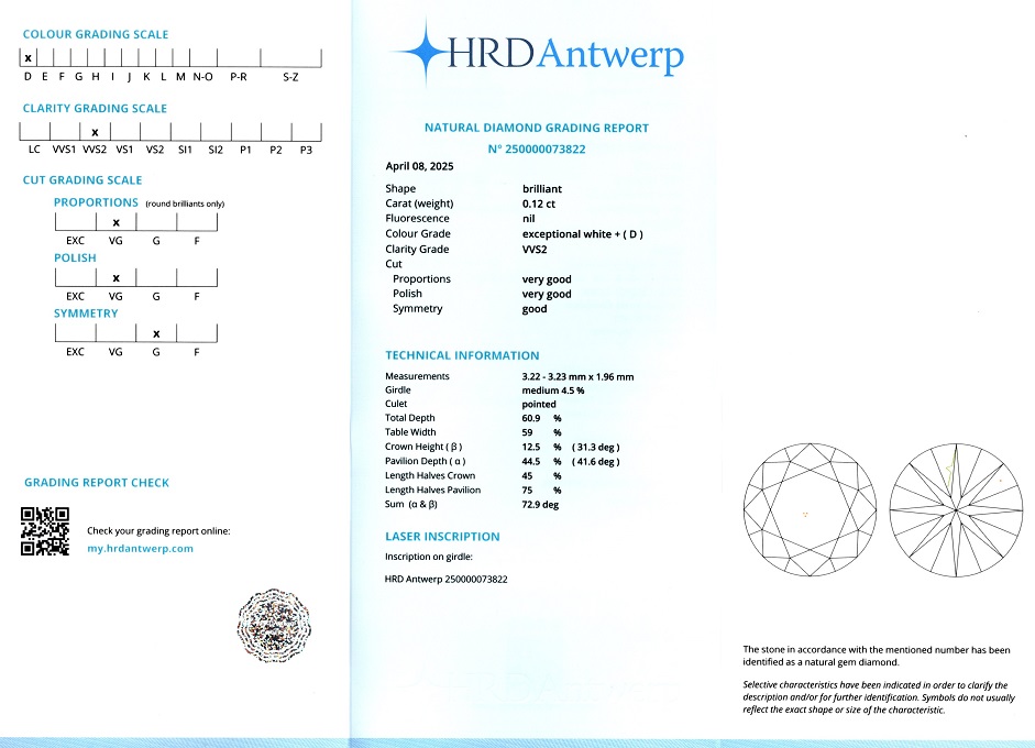 Diamantele / briliantele sunt insotite de un certificat de expertiza care atesta caracteristicile pietrelor pretioase dupa caz: tip, carataj, culoare, claritate, taietura etc.