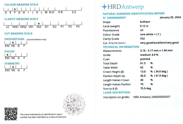 Diamantele / briliantele sunt insotite de un certificat de expertiza care atesta caracteristicile pietrelor pretioase dupa caz: tip, carataj, culoare, claritate, taietura etc.