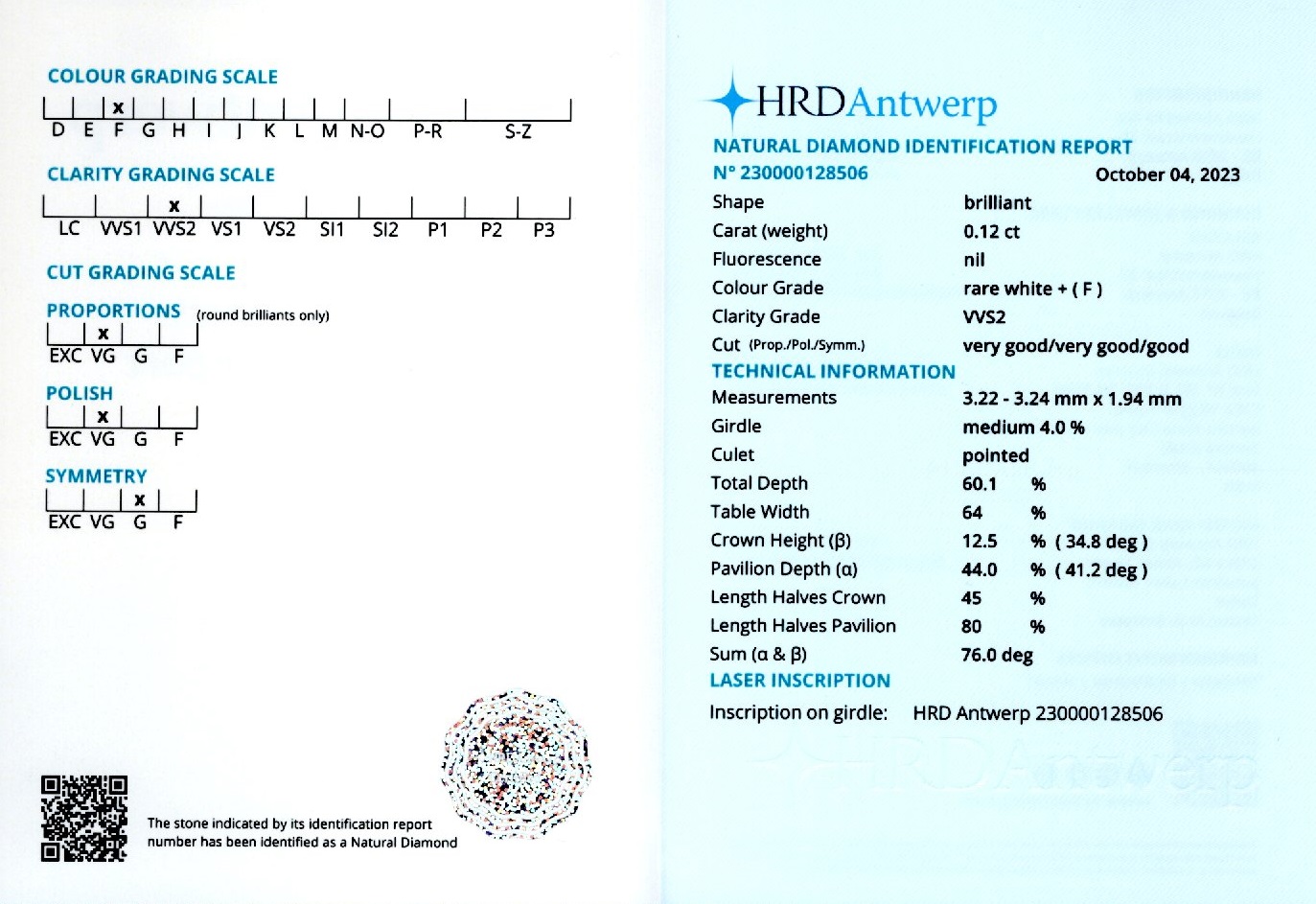 Diamantele / briliantele sunt insotite de un certificat de expertiza care atesta caracteristicile pietrelor pretioase dupa caz: tip, carataj, culoare, claritate, taietura etc.