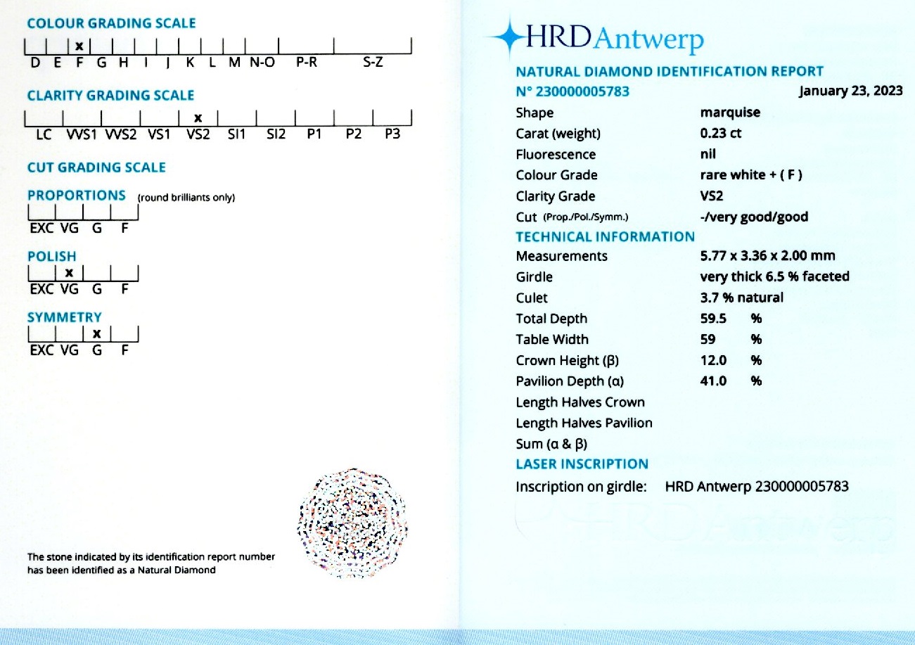 Diamantele sunt insotite de un certificat de expertiza care atesta caracteristicile pietrelor pretioase dupa caz: tip, carataj, culoare, claritate, taietura etc.