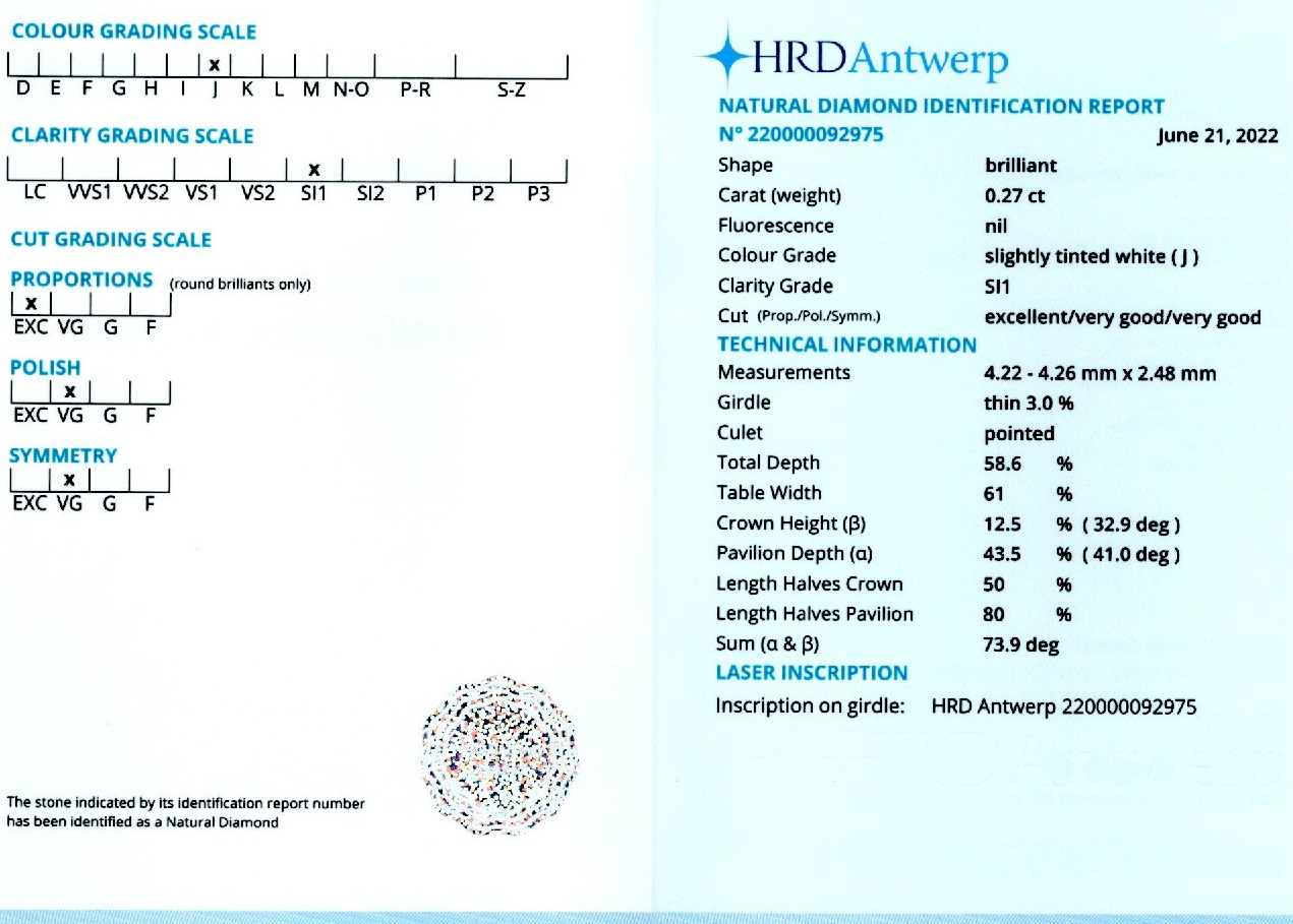Diamantele / briliantele sunt insotite de un certificat de expertiza care atesta caracteristicile pietrelor pretioase dupa caz: tip, carataj, culoare, claritate, taietura etc.