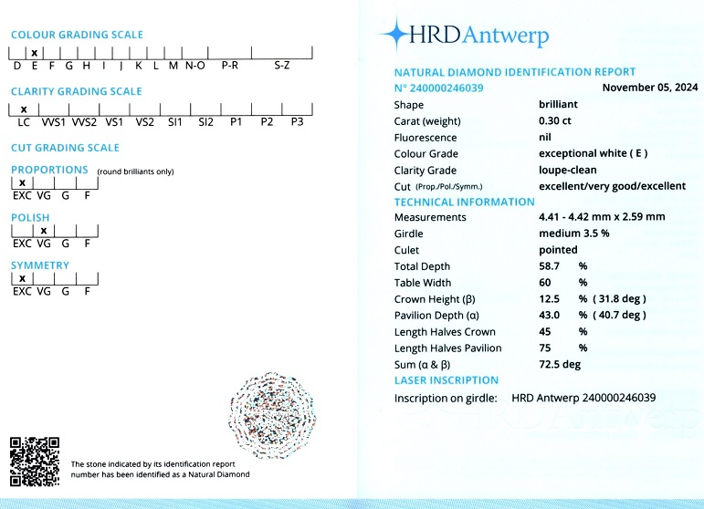 Diamantele / briliantele sunt insotite de un certificat de expertiza care atesta caracteristicile pietrelor pretioase dupa caz: tip, carataj, culoare, claritate, taietura etc.