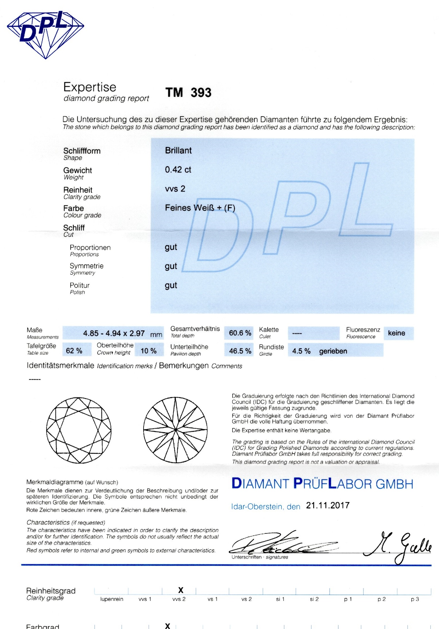 Diamantele / briliantele sunt insotite de un certificat de expertiza care atesta caracteristicile pietrelor pretioase dupa caz: tip, carataj, culoare, claritate, taietura etc.