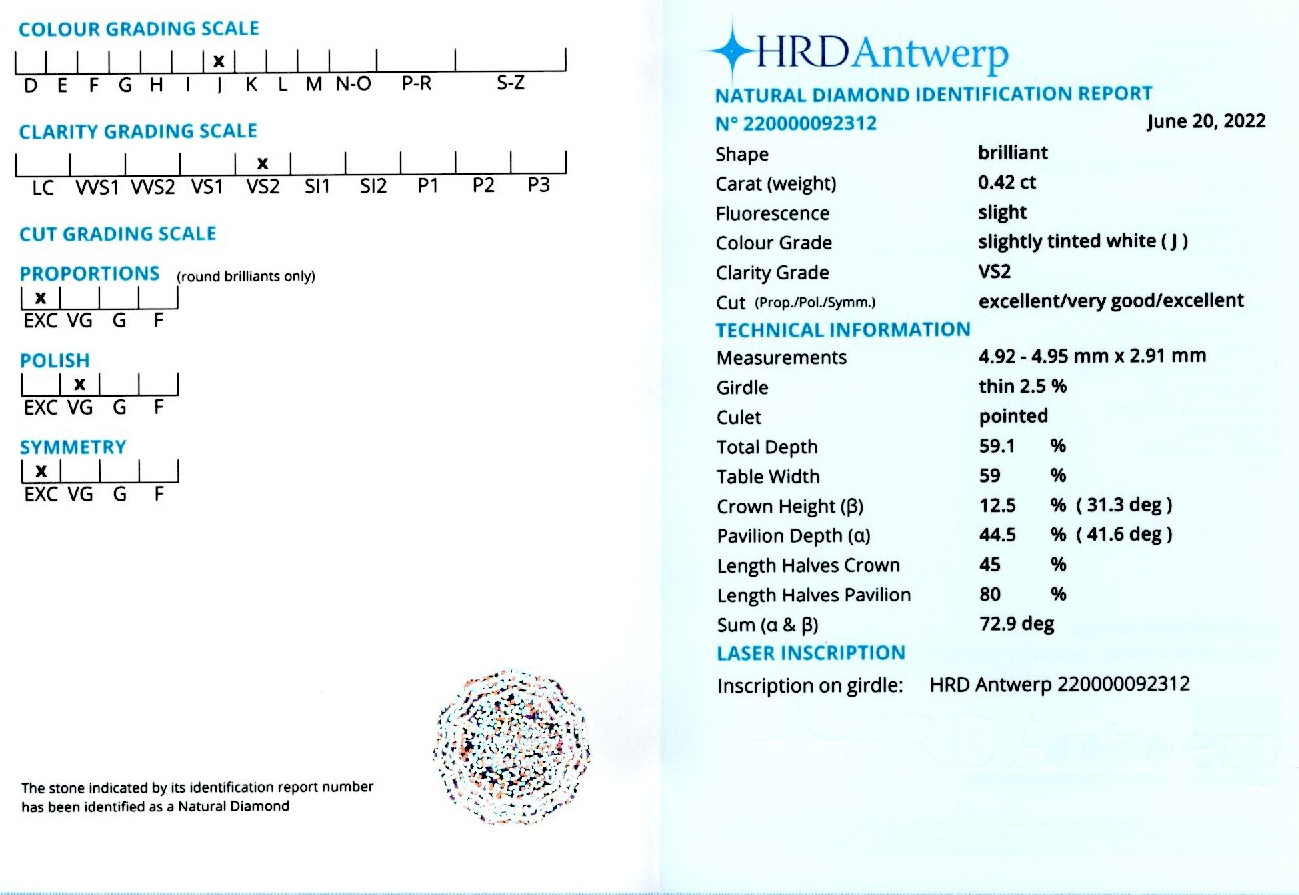 Diamantele / briliantele sunt insotite de un certificat de expertiza care atesta caracteristicile pietrelor pretioase dupa caz: tip, carataj, culoare, claritate, taietura etc.