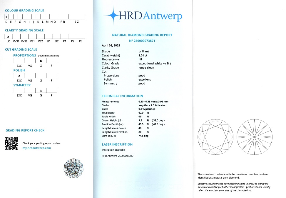 Diamantele / briliantele sunt insotite de un certificat de expertiza care atesta caracteristicile pietrelor pretioase dupa caz: tip, carataj, culoare, claritate, taietura etc.