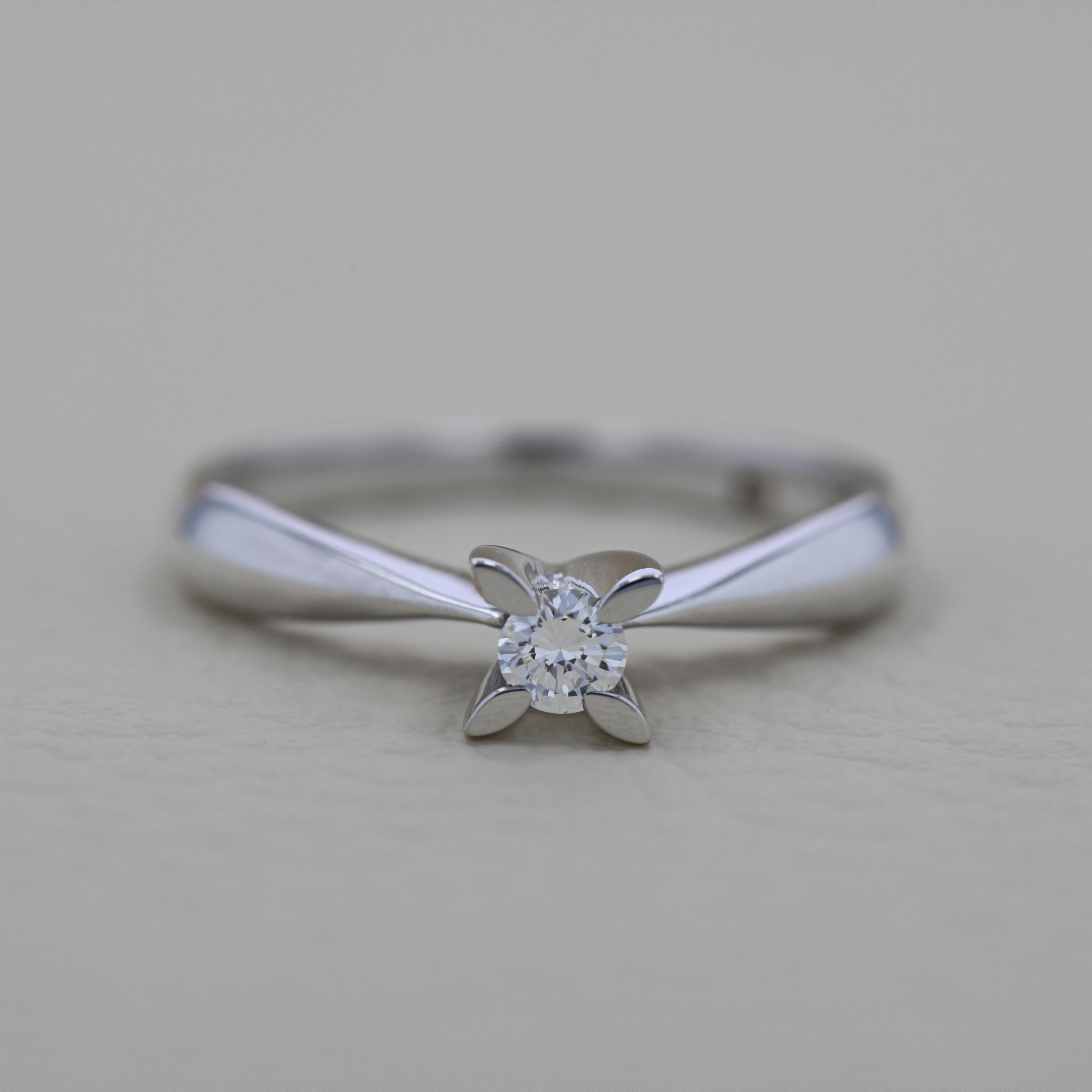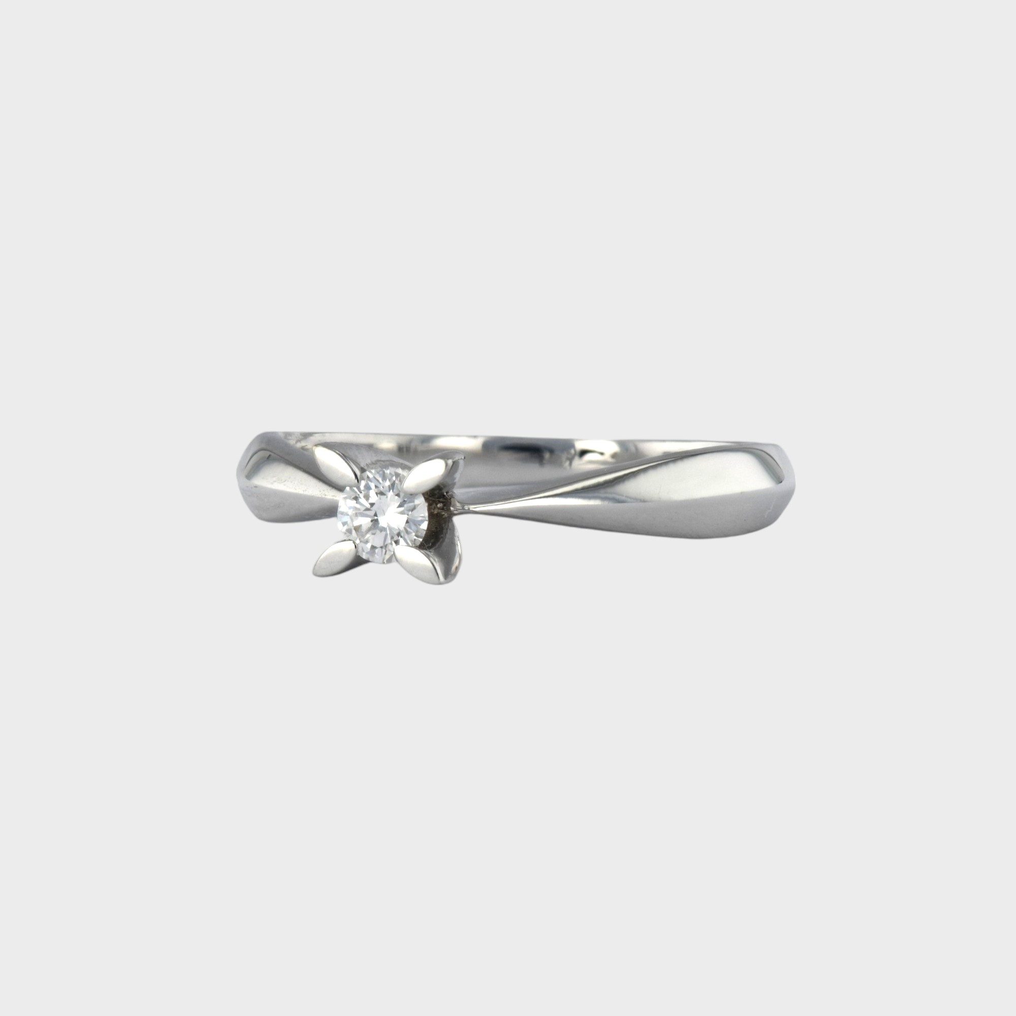 Inel de aur alb 18k, 3,37 grame, cu diamant rotund ~ 0,13 ct., taietura briliant, culoare G, claritate VVS, masura 55,5.