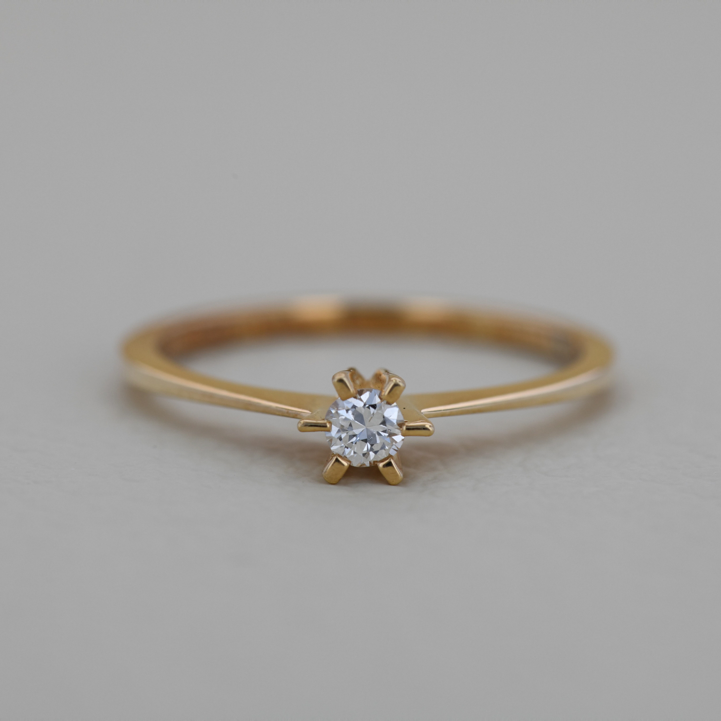 Inel de logodna din aur galben 18k(6 gherute), 1,73 grame, diamant ~ 0,14 ct., taietura briliant, culoare E, claritate VVS, masura 55.