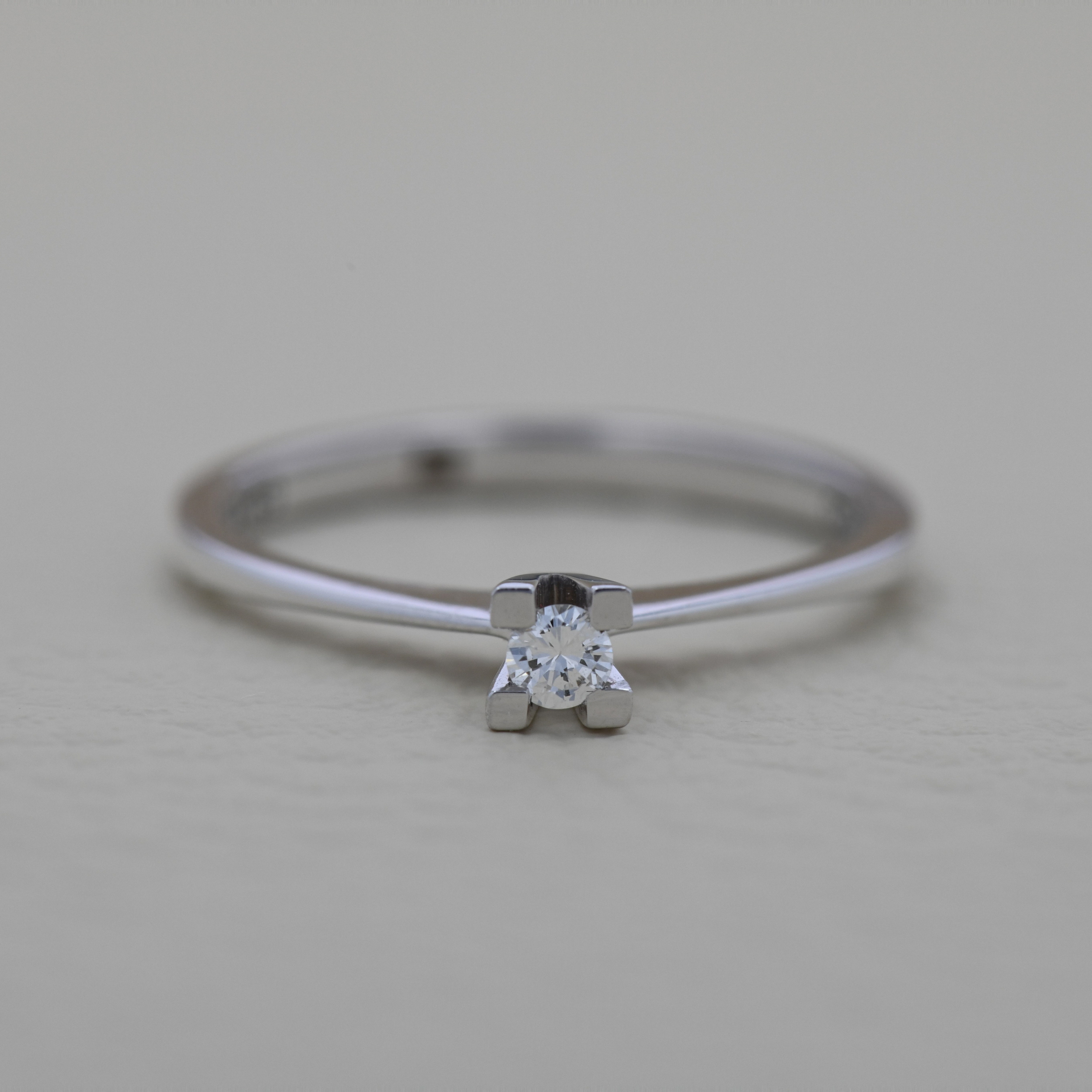 Inel din aur alb 18k, 2,25 grame, diamant ~ 0,08 ct., culoare I – J, claritate VVS, taietura briliant, masura 56,5.