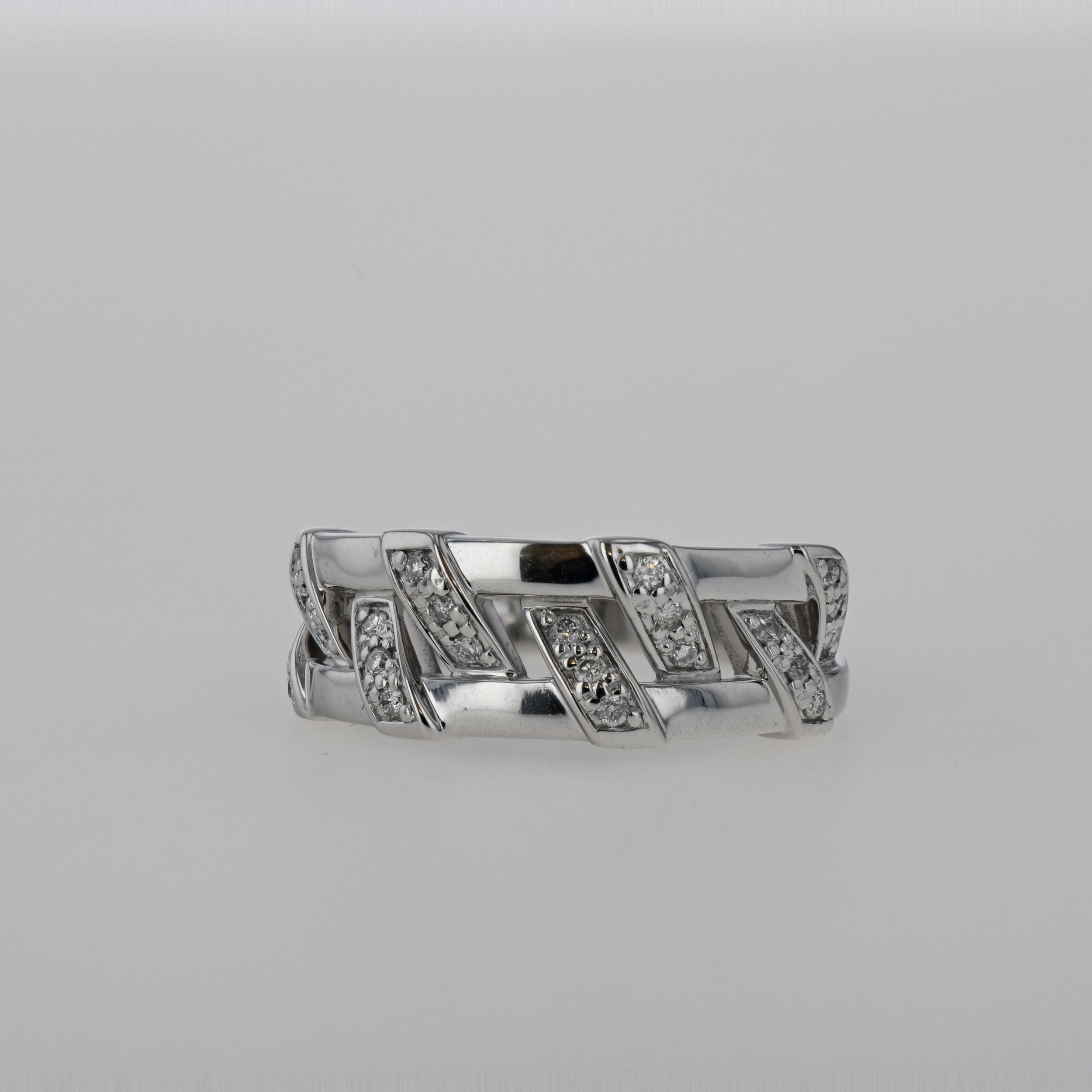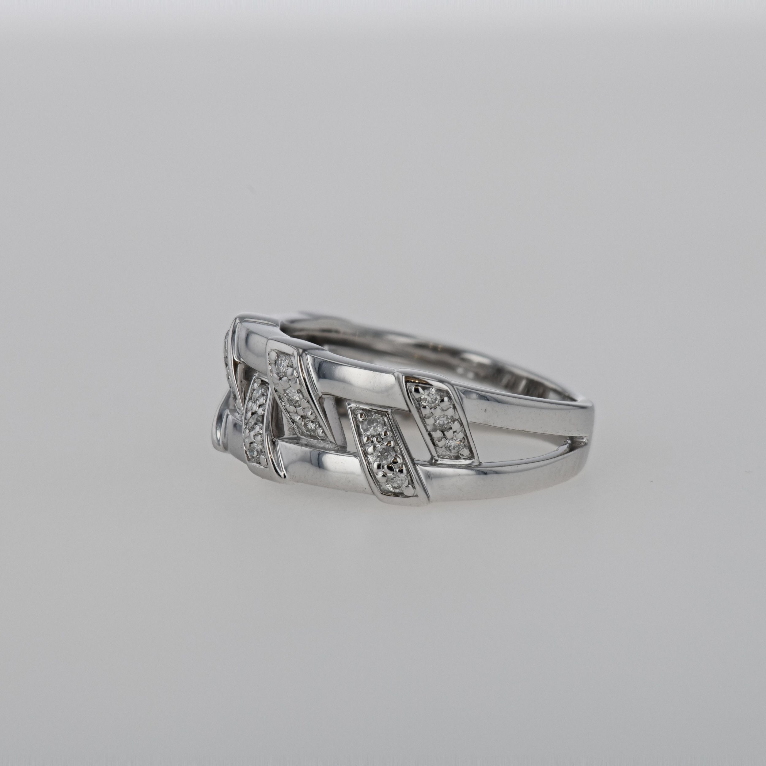 Inel din aur alb 18k, 5,35 grame, diamante ~ 0,14 ct., taietura briliant, culoare H – I, claritate VS – SI, masura 50.