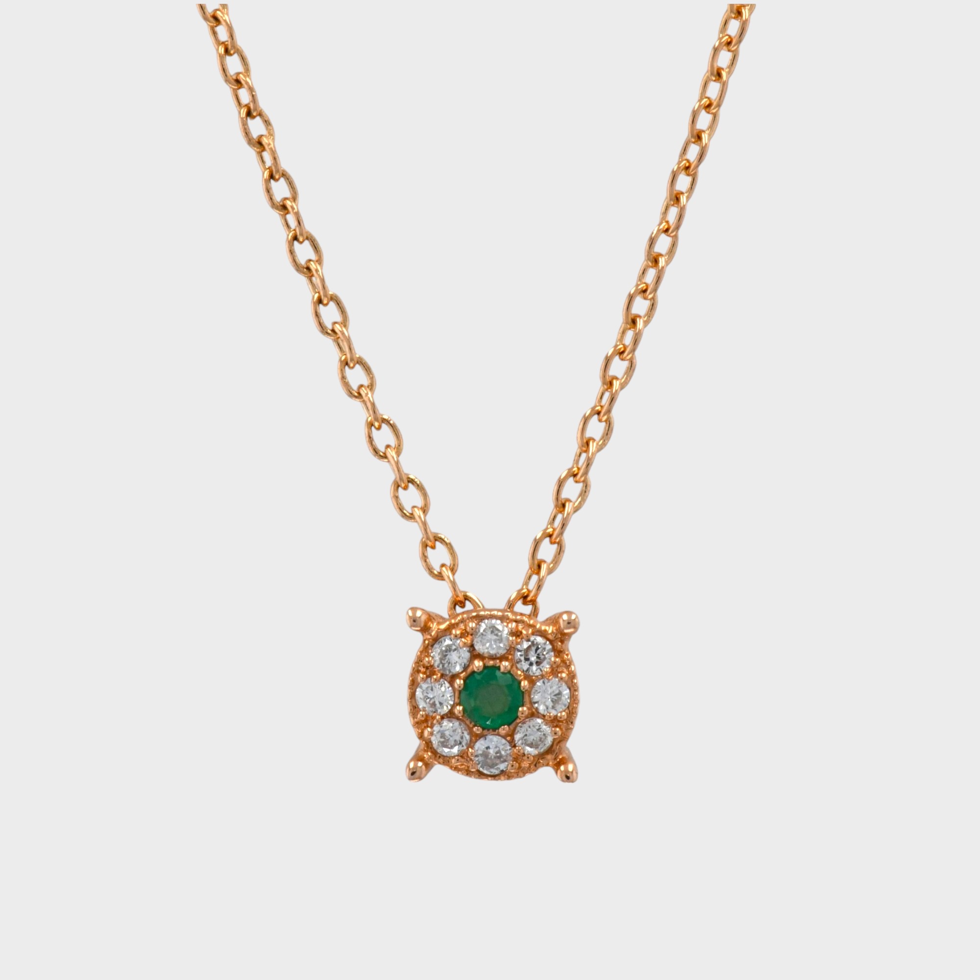 Lant cu pandantiv din aur roz cu smarald si diamante