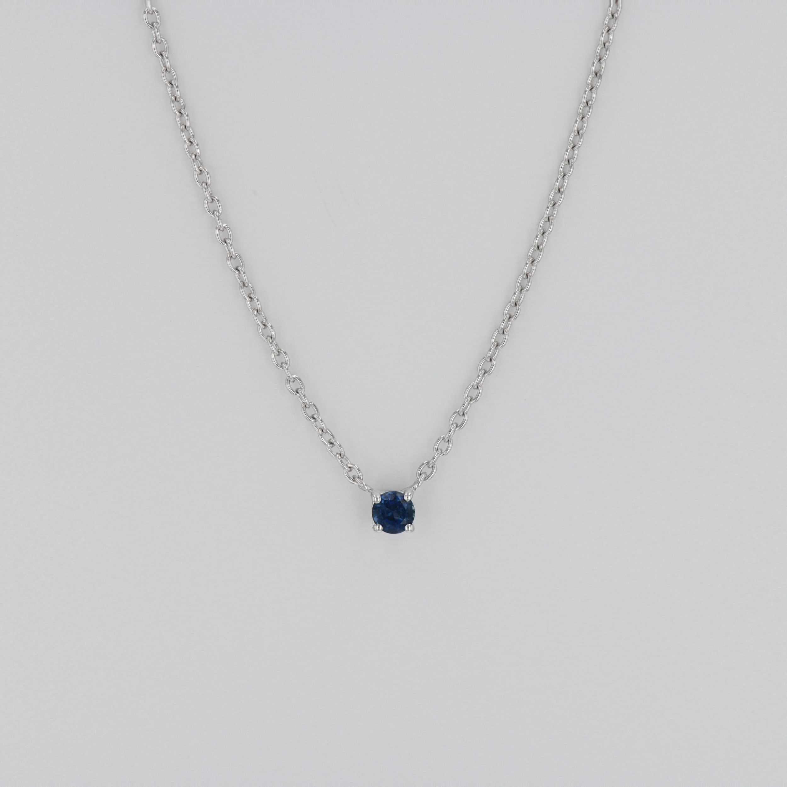 Lant din aur alb 18k, 2,13 grame, safir ~ 0,14 ct., taietura briliant, lungime lant ~ 42 cm, dimensiune pandantiv ~ 0,28 x 0,28 cm.