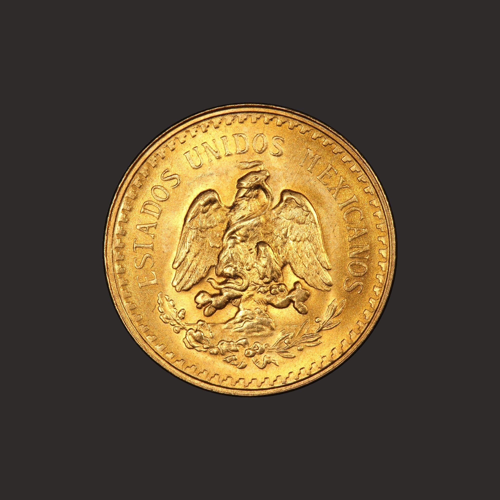 Reversul monedei prezinta stema Mexicului, un vultur care are in cioc un sarpe, asezat pe un cactus, simboluri puternice ale mostenirii mexicane. Sub cactus sunt doua ramuri cu frunze de laur si stejar. In partea de sus este gravat textul „ESTADOS UNIDOS MEXICANOS”.