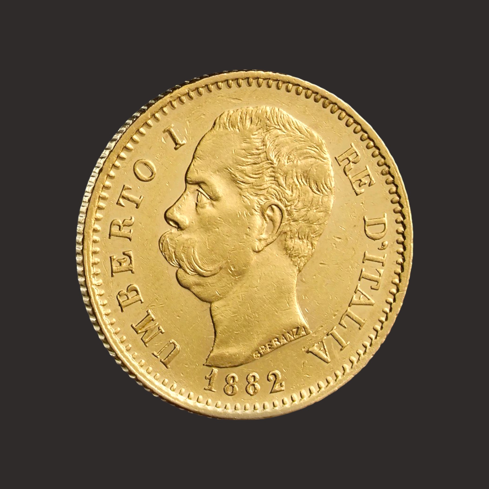 Moneda din aur de 20 de lire Umberto I, numita si „marengo italian”, a fost batuta pentru prima data in anul 1879, la cativa ani dupa proclamarea Regatului Italiei, care a avut loc in anul 1861.