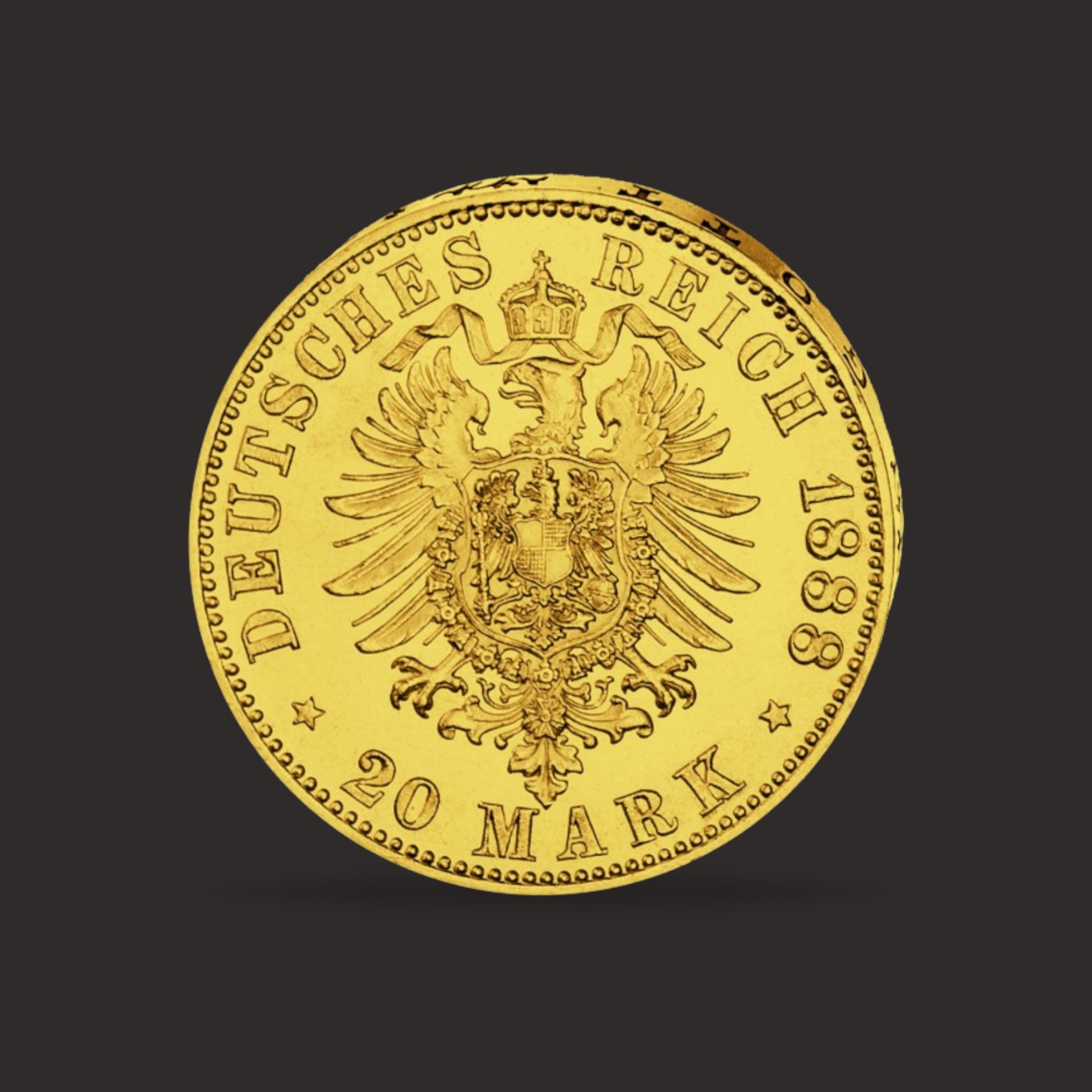 Moneda din aur emisa in Germania Imperiala care a jucat un rol important in revolutia industriala a Germaniei, facilitand comertul extern.
