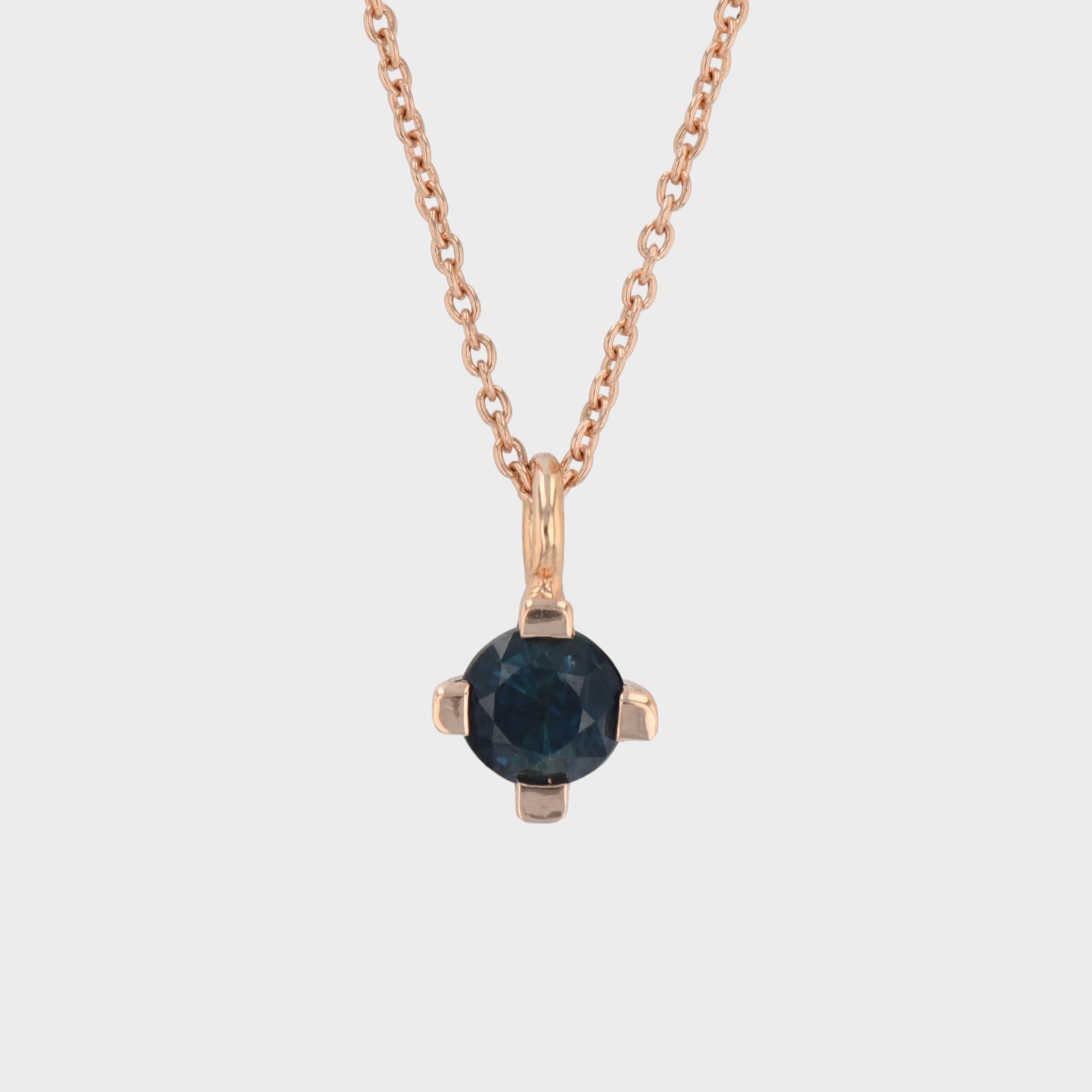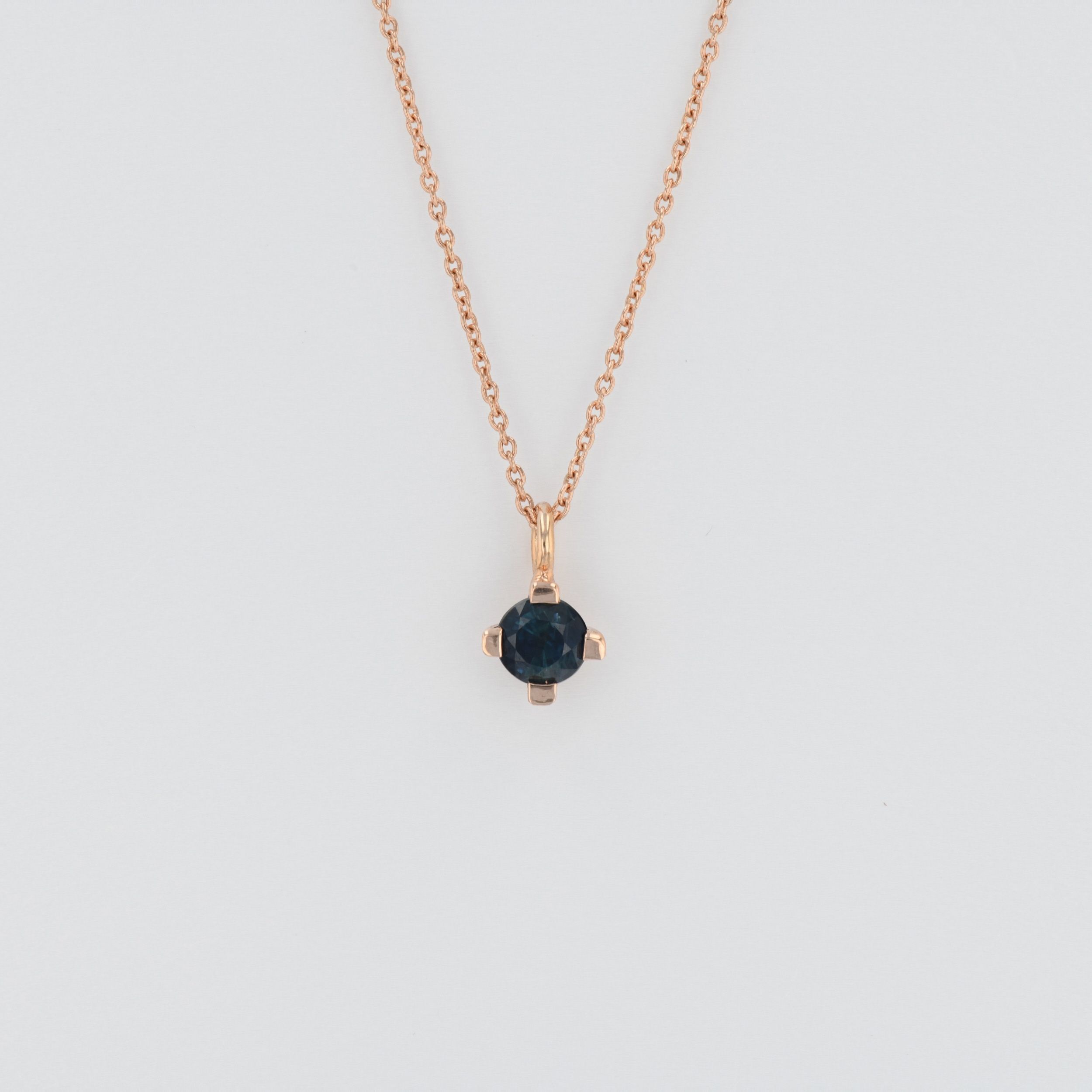 Pandantiv cu safir din aur roz 18k, 0,53 grame, safire ~ 0,55 ct., taietura briliant, dimensiune ~ 0,6 x 1 cm. Lantul nu este inclus in gramaj si in pret.