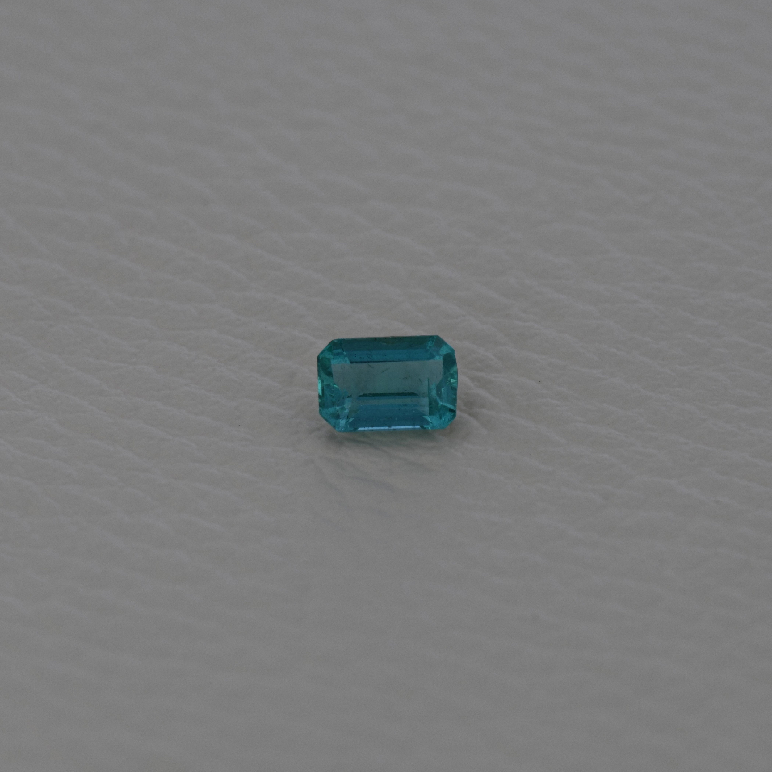 Smarald 1,03 ct., Zambia, culoare verde – albastrui, forma octogonala, taietura in trepte, transparent, specie beril natural, dimensiune 7,04 x 4,86 x 3,83 mm, certificare ALGT Antwerp nr. 89370500.