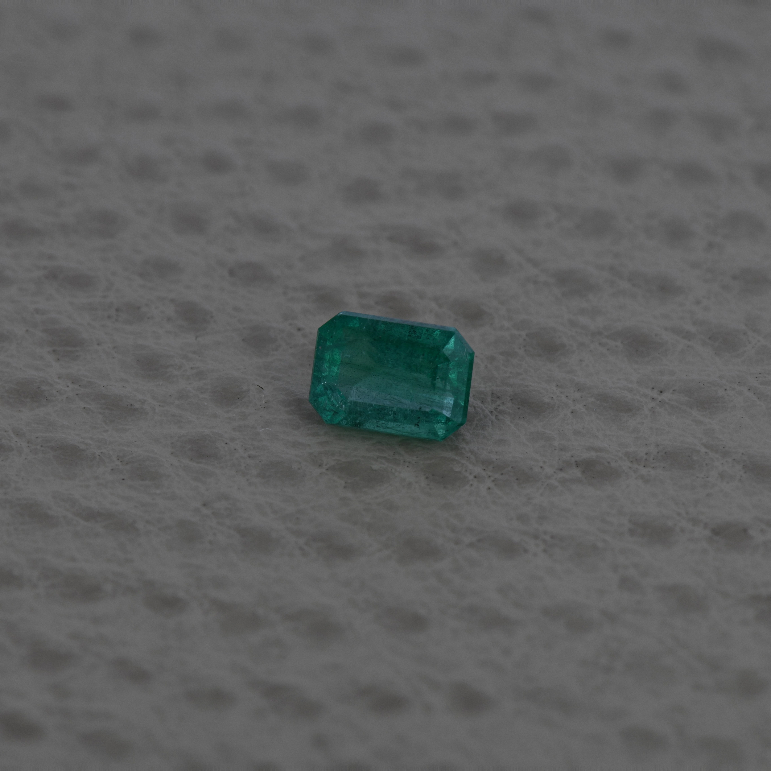 Smarald 1,88 ct., Zambia, culoare verde albastrui(Fine Color Quality), forma emerald, taietura in trepte, transparent, specie beril natural, certificare ALGT Antwerp nr. 46993243, dimensiune 8,02 x 5,82 x 5,00 mm.